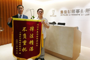“律法精湛,不負重托”——滬上中華老字號“東方眼鏡”法定代表人李定法先生親臨集佳贈送錦旗