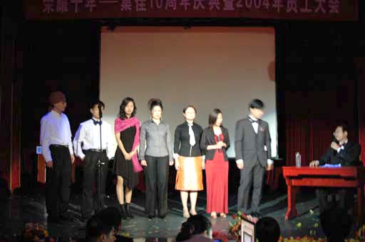 我們自編自演的文藝節(jié)目是本次慶典的重頭戲,在3個半小時里,共有來自總部各部門及辦事處的23個節(jié)目、230人次登場,節(jié)目精彩紛呈,花樣繁多,在場的所有人都被這臺超高水準(zhǔn)的表演折服了,迭起的掌聲、絢麗的熒光交織成一場盛宴,期間,2004—2005年度的優(yōu)秀員工還獲得了獎勵。